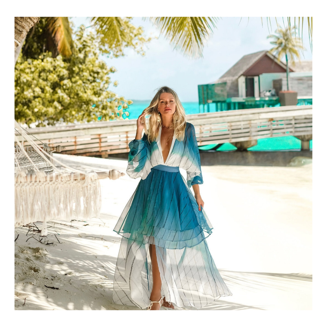 The deep V-neck at the front gracefully accentuates your neckline, adding a touch of sensuality and femininity. It frames your décolletage with elegance, creating a captivating silhouette that effortlessly draws attention.